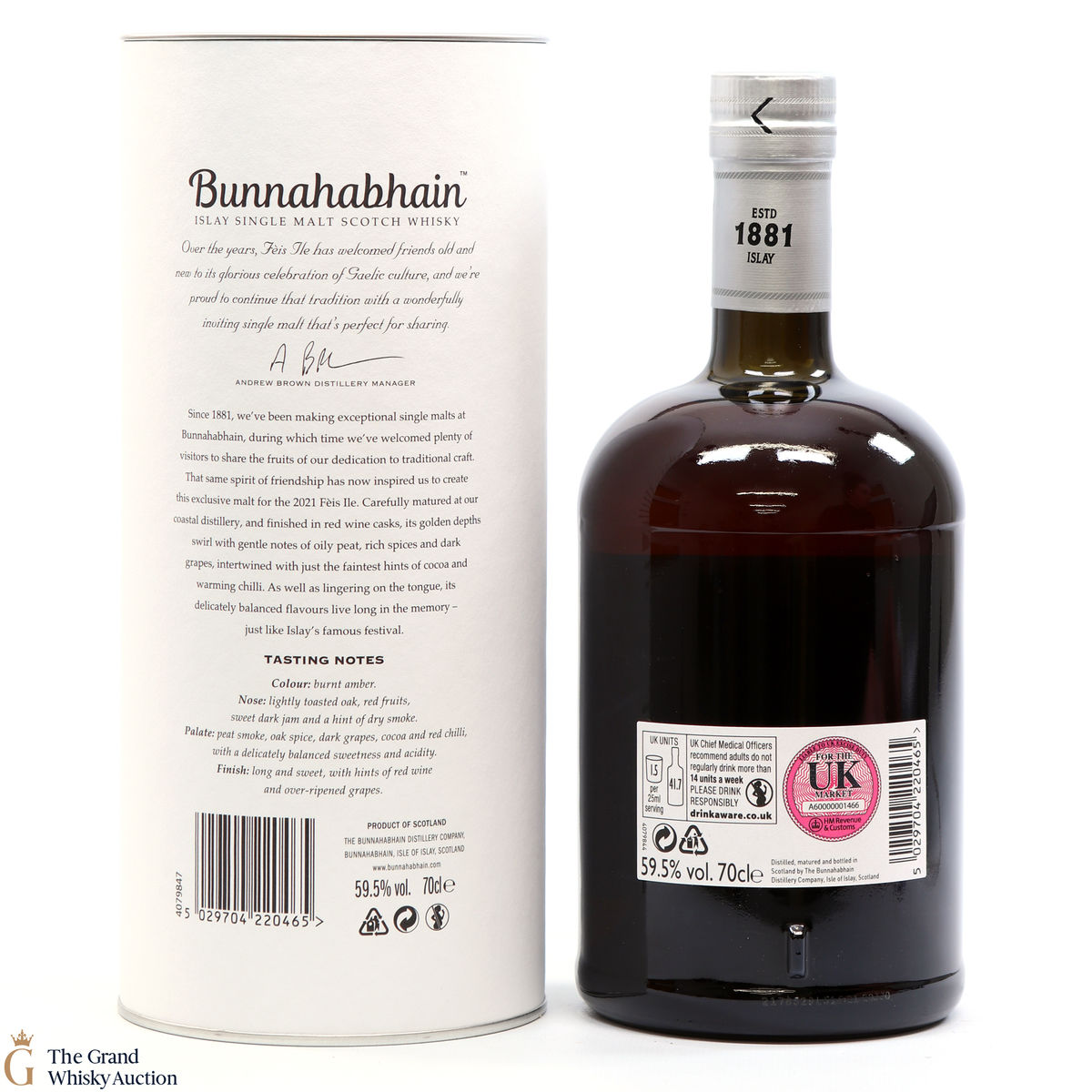Bunnahabhain's first release for Feis Ile 2021 is this limited edition smoky whisky. Distilled on the 10th of October 2013, this single malt was finished in Moine Bordeaux casks which gives the Bunnahabhain a delicately balanced flavour. Bottled on the 25th of November 2020, this is one of only 5166 bottles produced.