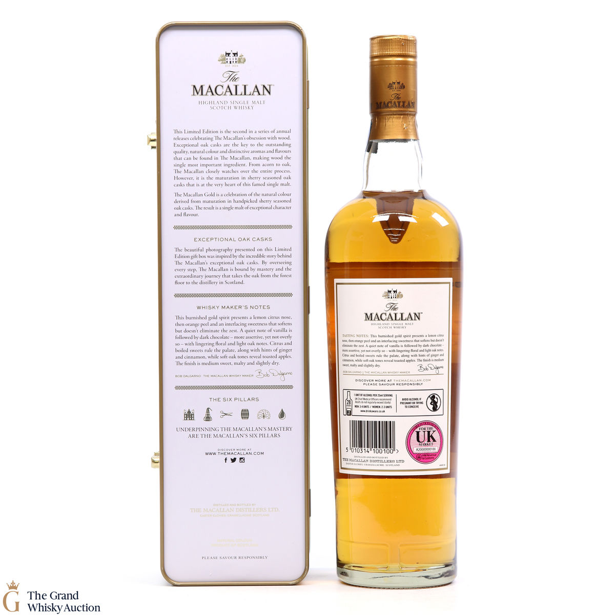 Macallan Gold was released in late 2012 as part of a series of colour-themed bottlings introduced to replace the distillery's age-statement expressions. Produced from 9-15yo first fill and refill sherry casks, it was designed to sit between the now-defunct 10yo Sherry Oak and 10yo Fine Oak bottlings.