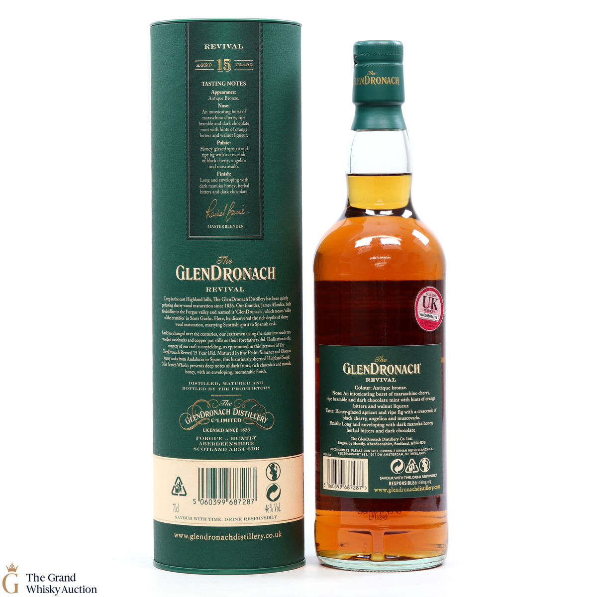 GlenDronach's 15 Year Old Revival was sadly discontinued in 2015 by the distillery due to lack of available stocks. However, stocks have been replenished and The GlenDronach 15 Year Old Revival has returned. This bottling was matured in Oloroso sherry casks.