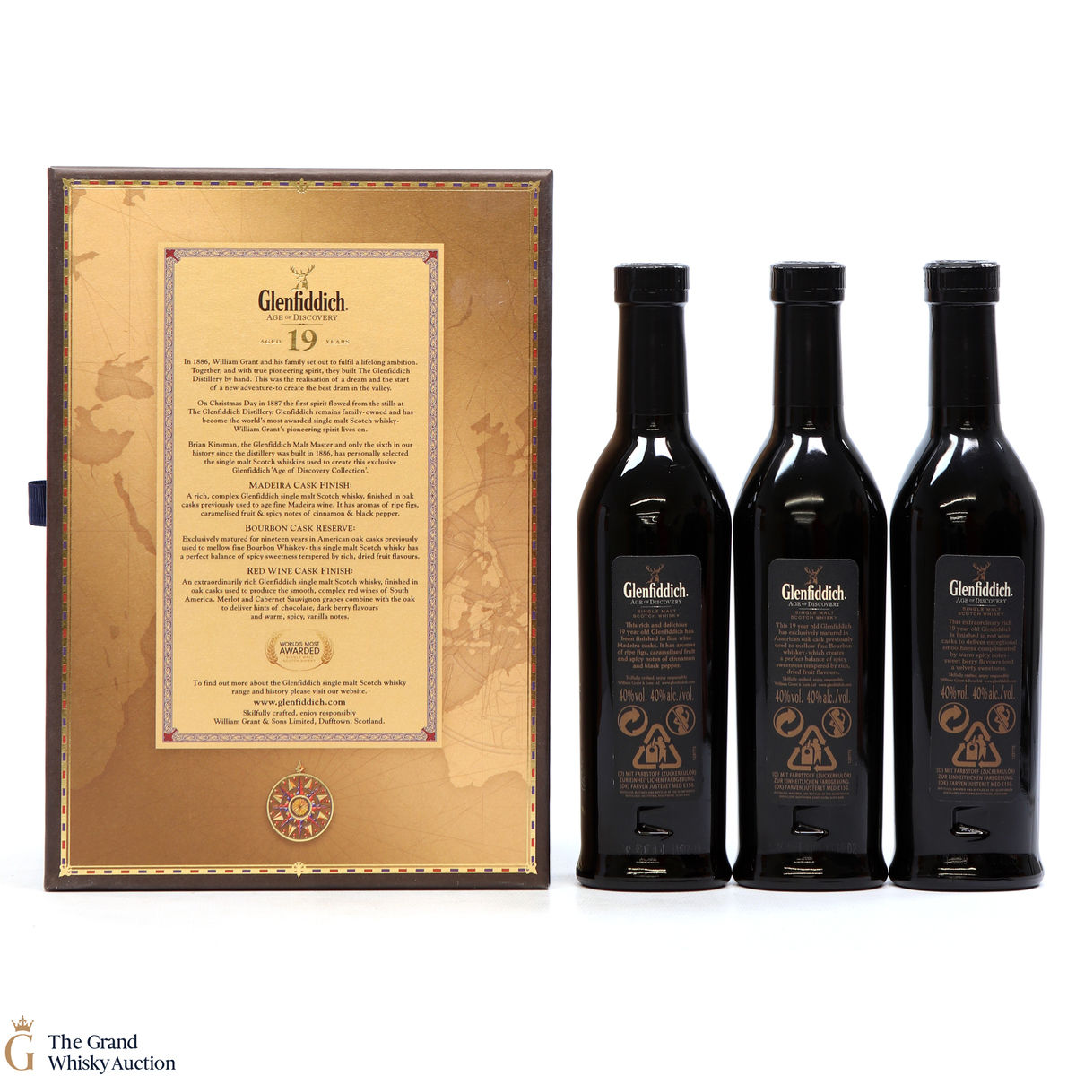 This lot contains 3 x 20cl bottles, one of each of the 19 year old Glenfiddich Age of Discovery Series: