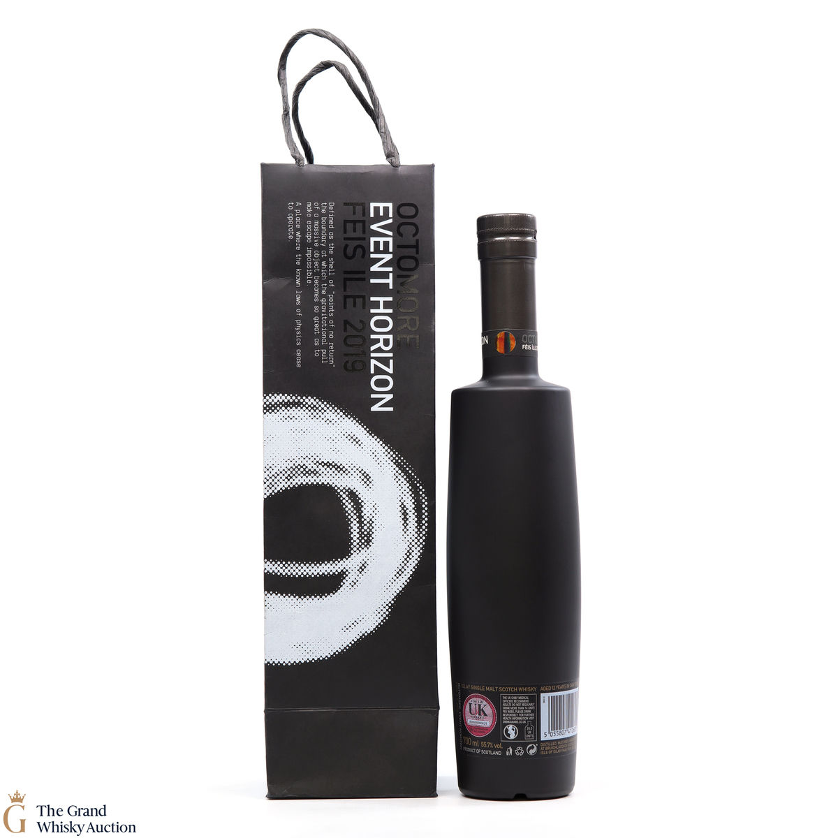 Octomore Event Horizon is the 2019 Fèis Ìle expression from Bruichladdich. It is the oldest Octomore released by the Islay distillery. This is one of only 2,000 bottles of Octomore Event Horizon which were released exclusively at the distillery during the festival and have already sold out completely.