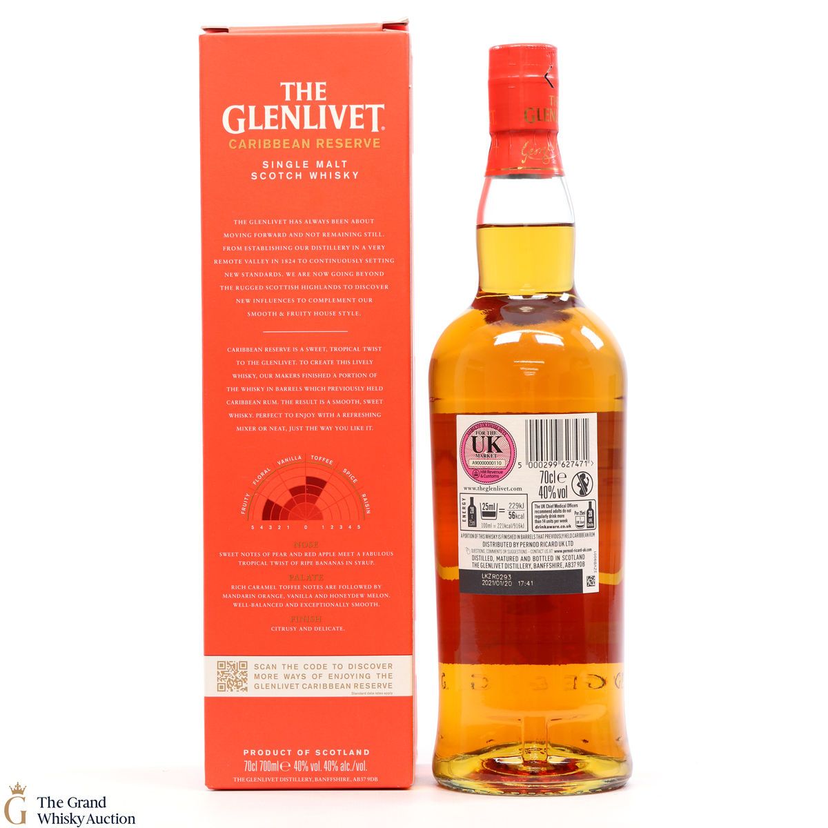 Distilled at Glenlivet Distillery in Speyside, this single malt was finished in casks that previously held Caribbean Rum.