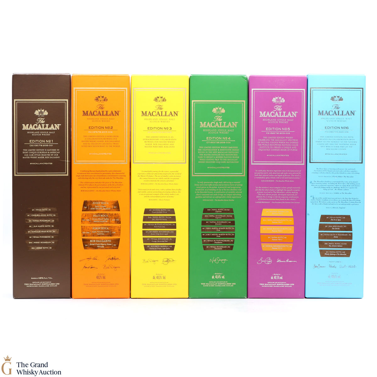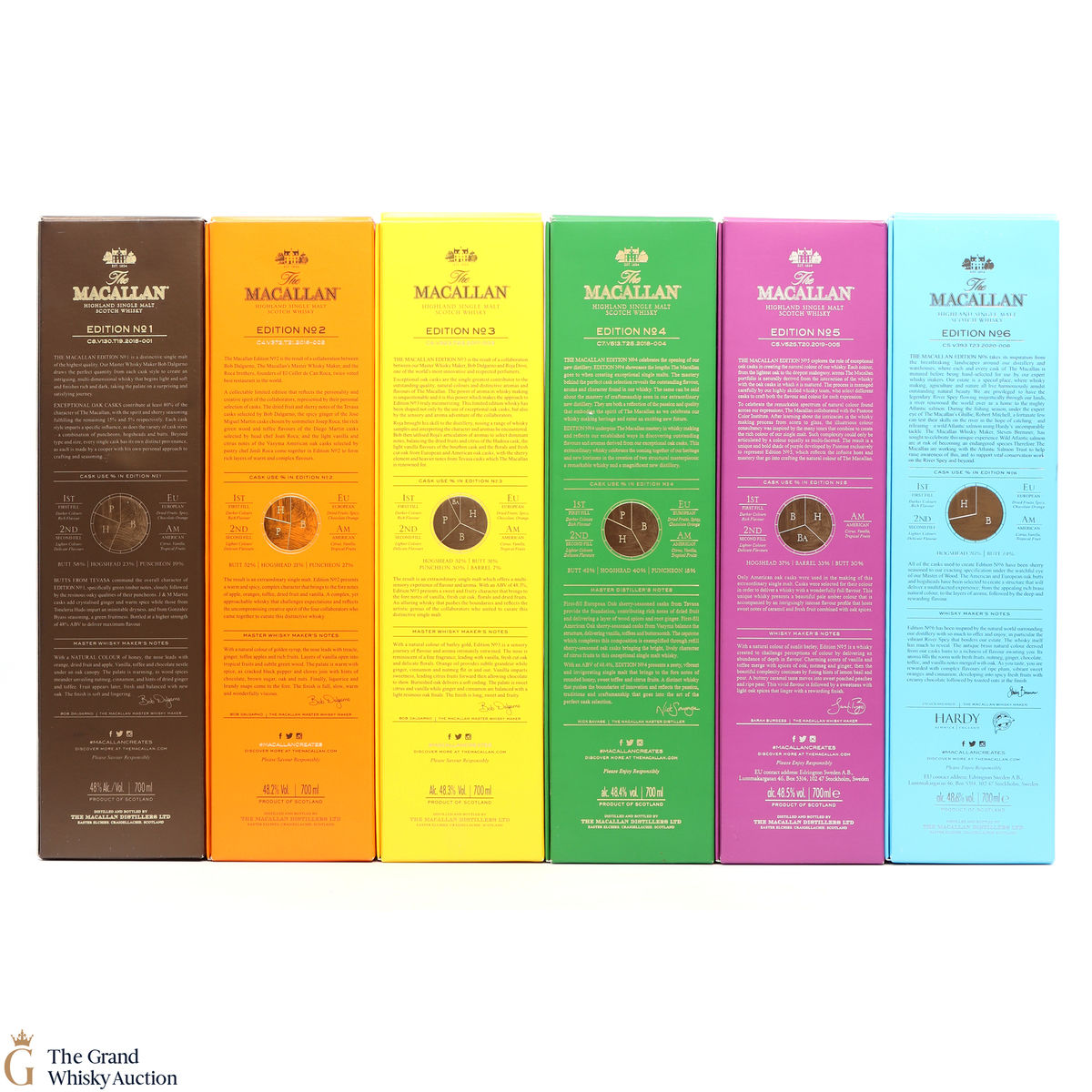 This lot brings together the Macallan Edition set to date, comprising of Edition no. 1, 2, 3 4, 5 & 6 in the annual limited edition series.