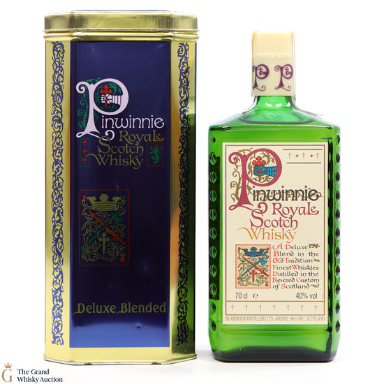 This is an eye-catching older style bottling of Pinwinnie Royale Deluxe Blended Whisky. It is very elegantly packaged with an iconic presentation tin. It is estimated that this botting is from the 1980s - unfortunately it is now discontinued.