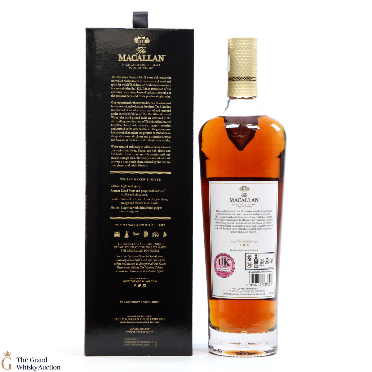 This annual release of The Macallan's popular 18 Year Old Sherry Oak is matured exclusively in sherry seasoned casks, built from both Spanish and American oak, providing a beautifully dark flavour with rich aromas.