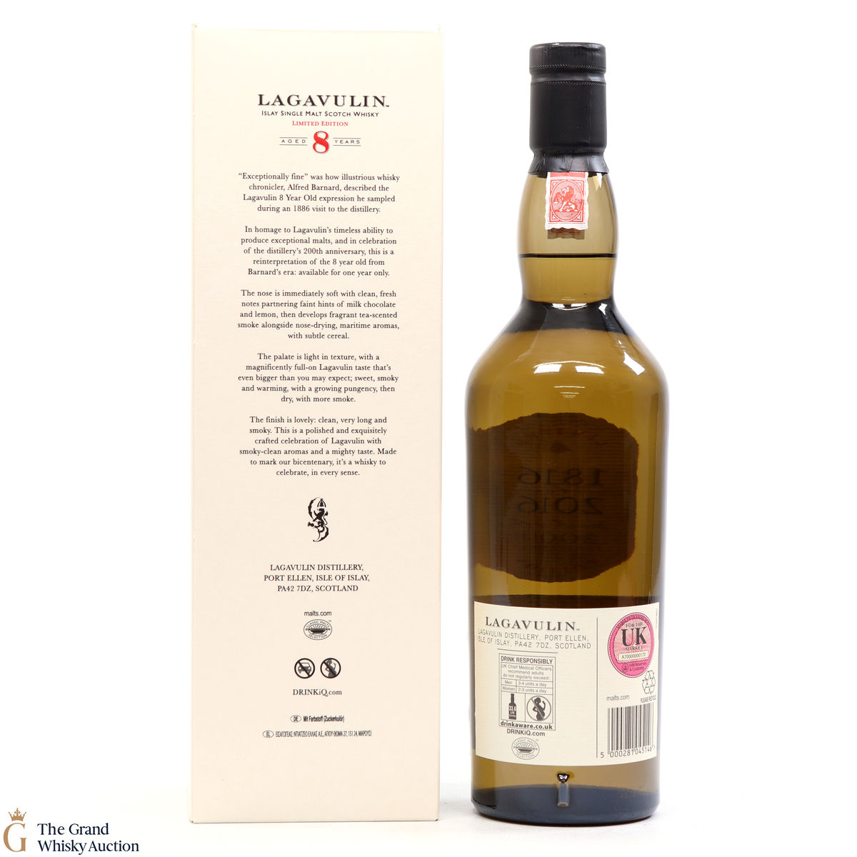 This 8 year old was released in 2016 to commemorate the 200th anniversary of the founding of Lagavulin distillery by John Johnston in 1816. This single malt is smoky, with underlying sweet spice. It was inspired by the visit of Alfred Barnard to the distillery in the 1880s when he tried an 'exceptionally fine' eight-year-old from the distillery, making this a very fitting tribute for the milestone occasion.