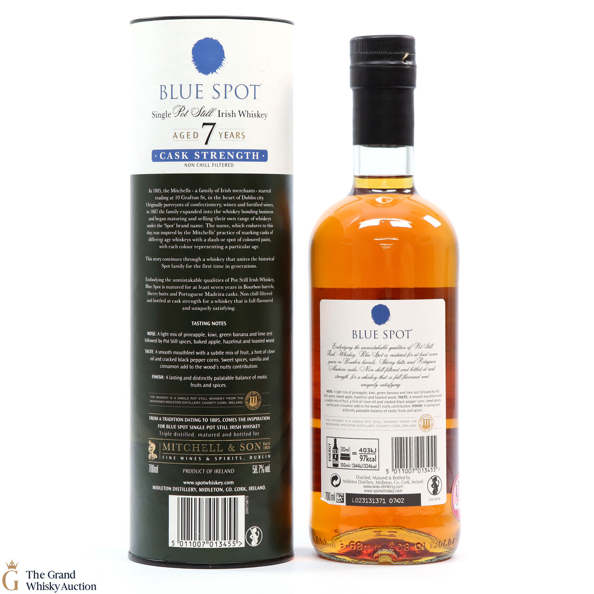A collaboration from Irish Distillers and Mitchells & Sons, this Blue Spot 7-Year-Old Cask Strength marks the revival of the Blue Spot - it has been 56 years since the last recorded bottling of the old Blue Spot in 1964. This Blue Spot contains whiskey aged in carefully selected Madiera casks.
