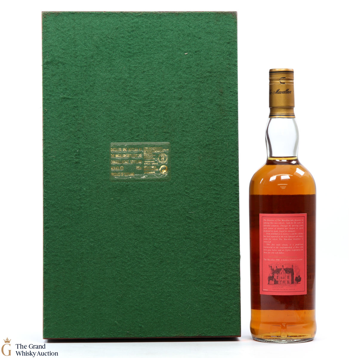 Distilled at the Macallan Distillery in 1946, this fantastic single malt underwent maturation in sherry wood for 52 years. Incredibly rare, this bottling comes with a display case and certificate. The perfect addition to a Macallan fan's collection.