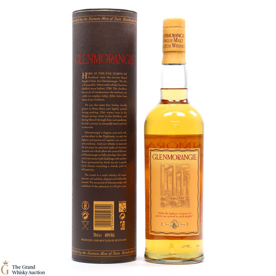 An older style bottling of Glenmorangie 10-year-old. Handcrafted by the sixteen men of Tain.
