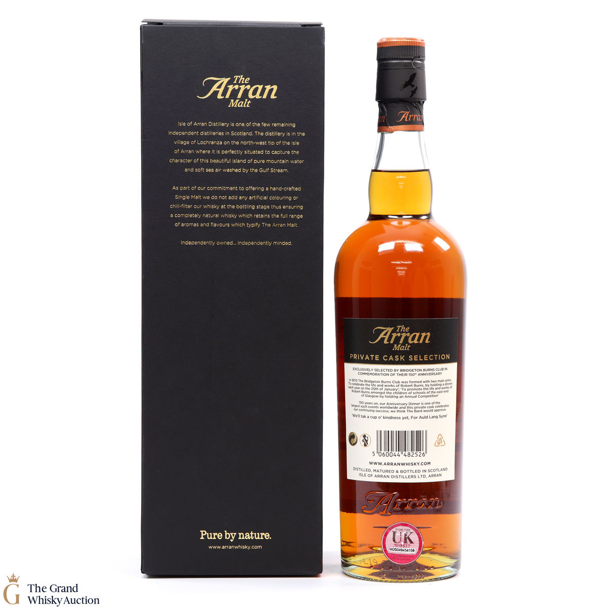 Distilled at Arran Distillery on the 1st of December 2009, this single malt was matured in Sherry Hogshead 2009/839 until it was bottled on the 21st of November 2019. This private cask was bottled to celebrate the Bridgeton Burns Club 150th Anniversary 1870-2020. The Bridgeton Burns Club was formed in 1870 to celebrate the life and works of Robert Burns.