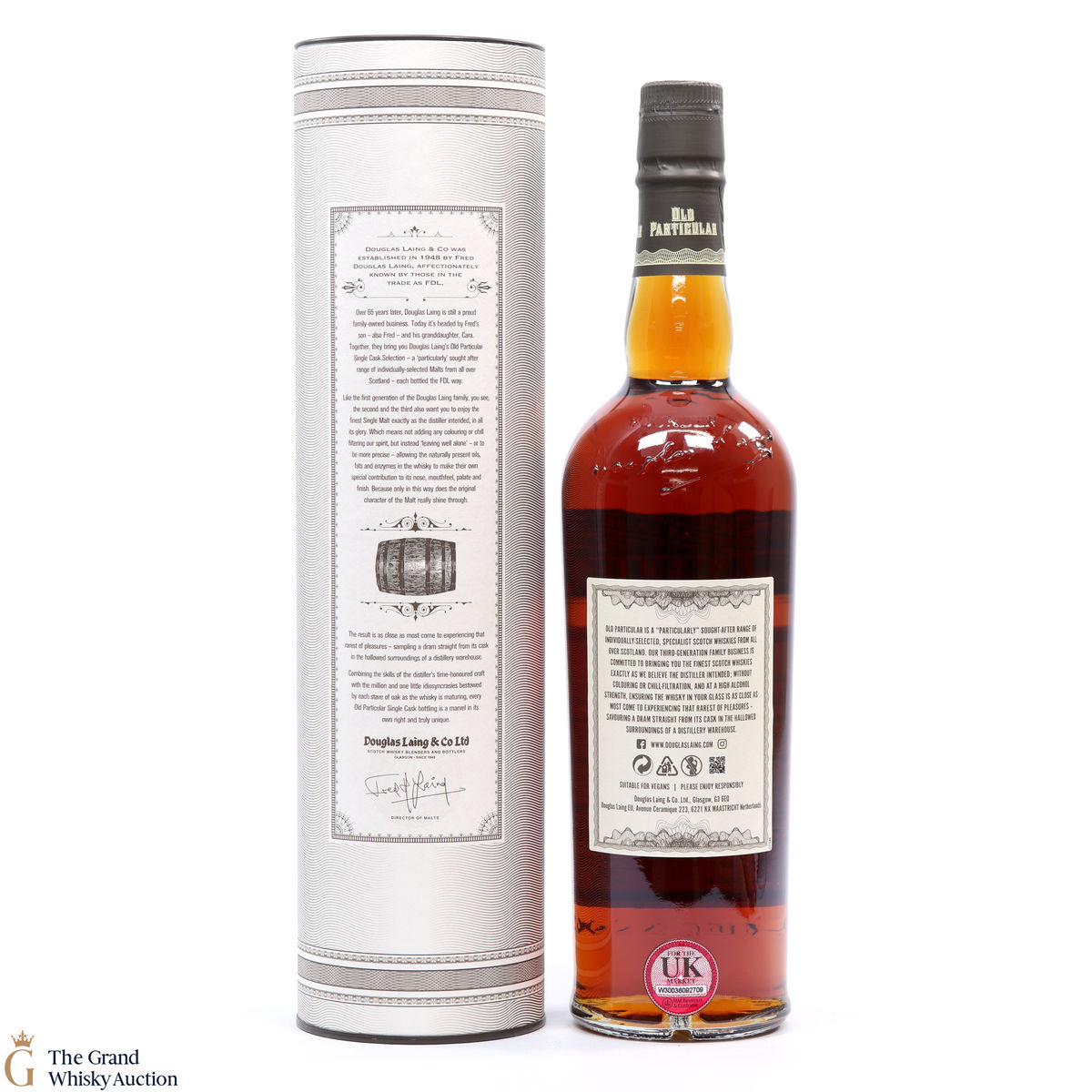 Due to the various ages of bottles and their seals, the condition of liquid is at the buyer's discretion and no claim can be lodged against failure/leakage in transit. Loss and breakage cover is available at 3% of the hammer price as standard. If the lot is not insured, no claim can be lodged against the courier or The Grand Whisky Auction for breakage or loss in transit.