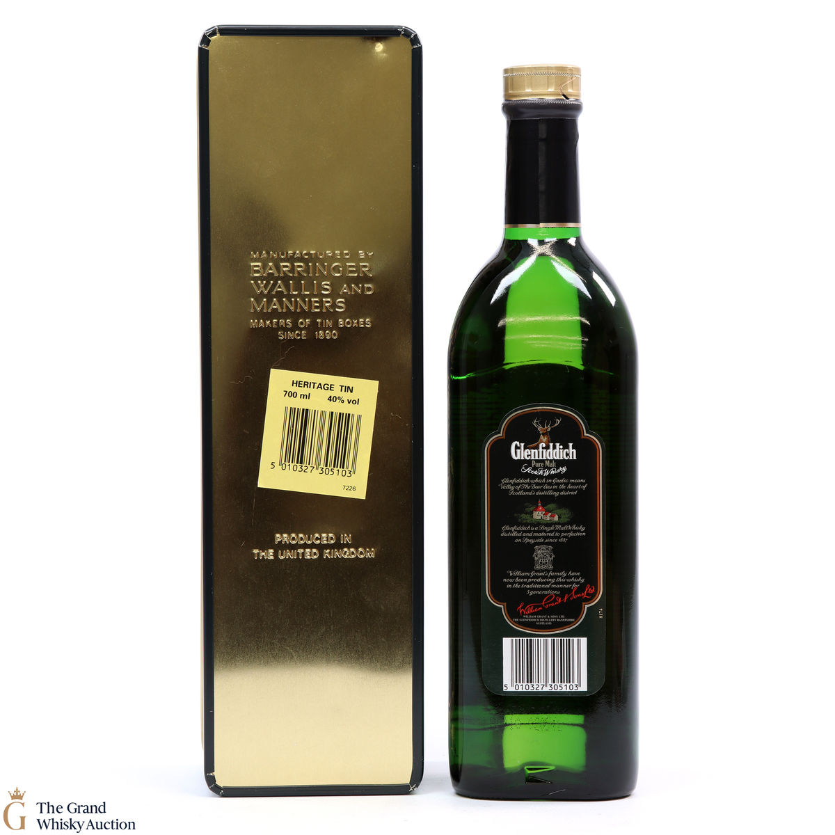 A collectable Glenfiddich single malt Scotch whisky from the 1980s in a Clans Of The Scottish Highlands presentation tin featuring Clan Drummond.