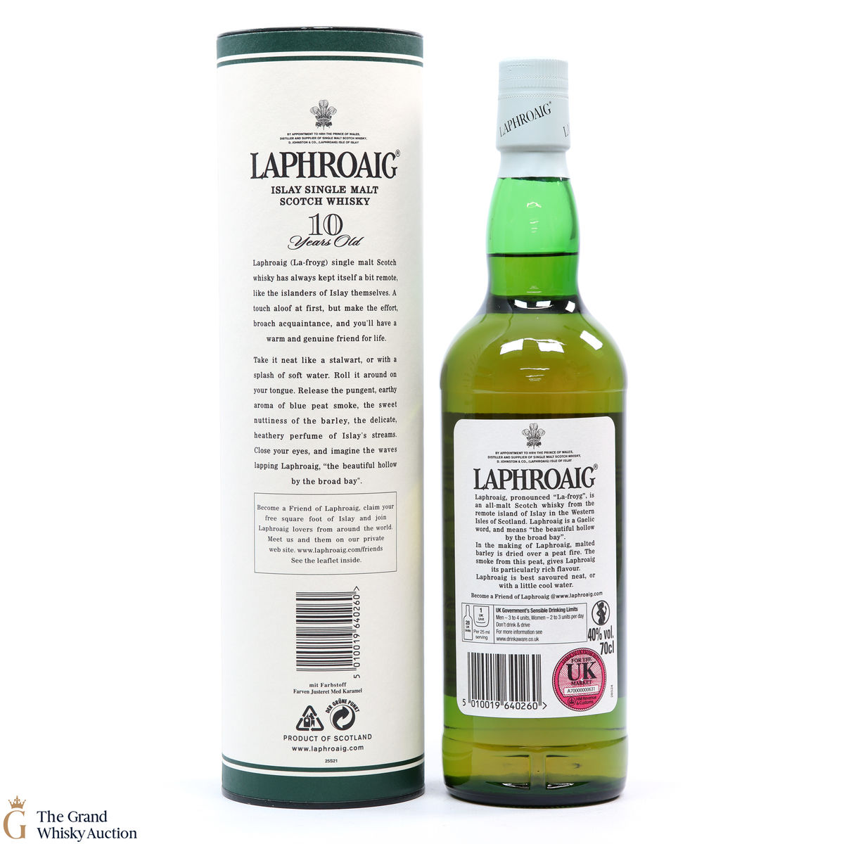 A 70cl of the medicinal 10 year old from Islay's bestselling distillery, Laphroaig. In making Laphroaig, malted barley is dried over a peat fire. The smoke from this peat, found only on Islay, gives Laphroaig its particularly rich flavour.