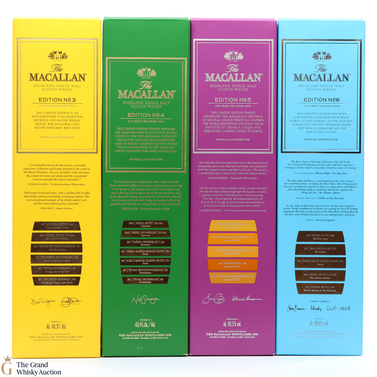This lot brings together some bottles from the Macallan Edition set to date, comprising of Edition no. 3 4, 5 & 6 in the annual limited edition series.