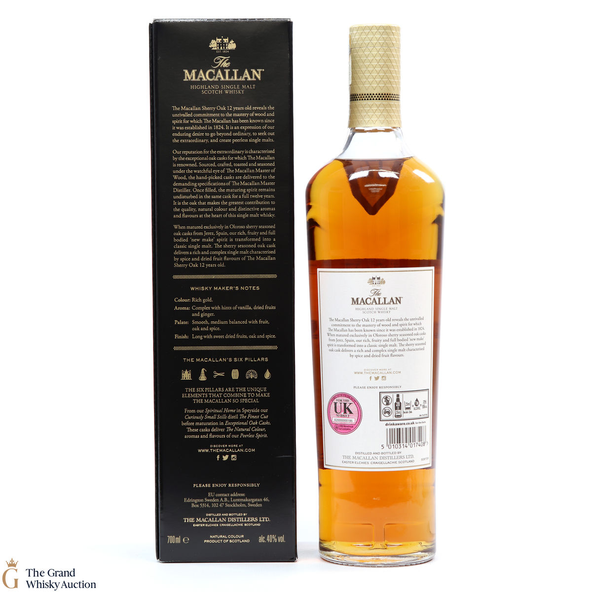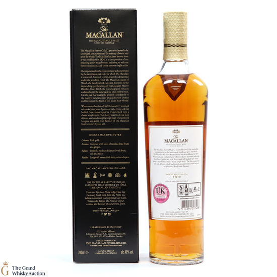The Macallan Sherry Oak 12 Years Old forms part of the Sherry Oak range which features a series of single malt whiskies matured exclusively in hand-picked sherry seasoned oak casks from Jerez for richness and complexity.