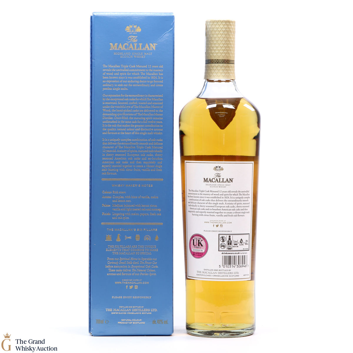 The 12 year old single malt was matured for 12 years and drawn from a combination of European sherry seasoned casks, American sherry seasoned casks and American ex-bourbon casks. It is part of Macallan's Triple Cask range which was launched in 2018, taking the place of the Fine Oak range.