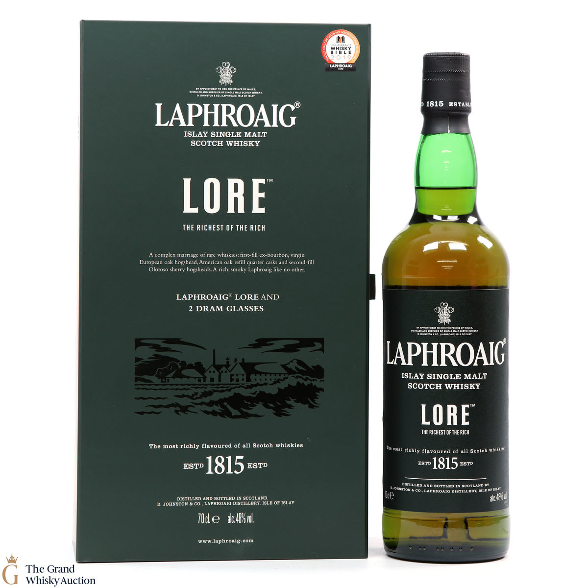 Included in this lot is 1 x 70cl Laphroaig Lore and 2 x whisky tumblers.