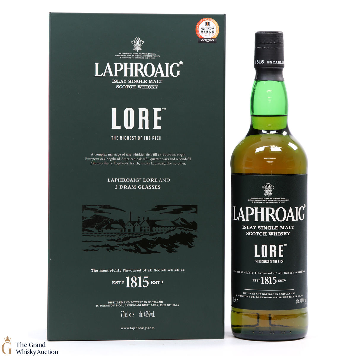 Included in this lot is 1 x 70cl Laphroaig Lore and 2 x whisky tumblers.