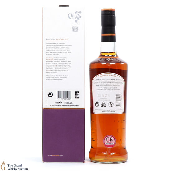 Produced from the unspoiled land of Islay, this beautiful malt has been aged for 18 years in the famous Vaults. Bowmore is in the heart of the island and on the shore of Loch Indaal.