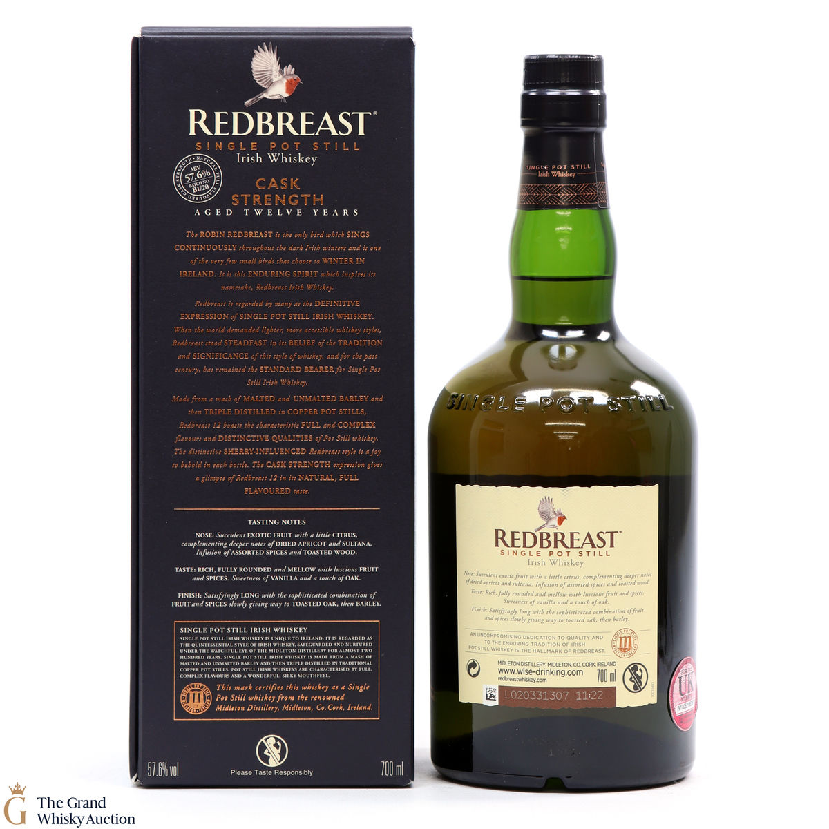 This is the first batch of Redbreast Cask Strength released in 2020. Bottled at 57.6%, this 12-year-old single pot still Irish whisky was matured in Oak casks.