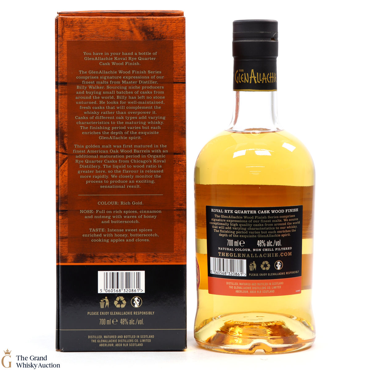 Part of the Wood Finish Series by GlenAllachie where they source high quality casks from around the world to add character to their famous whisky. Matured for a total of 8 years, this single malt was initially held in the finest American Oak barrels and finished in Organic Rye Quarter Casks from Chicago's Koval Distillery.
