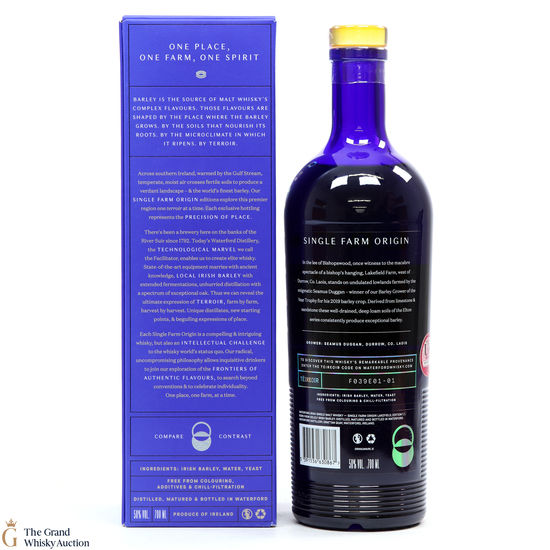 Part of Waterford Distillery's Single Farm Origins series, the barley that produced this whisky is from Lakefield Farm, Durrow. Farmed by Seamus Duggan who won the Waterford Barley Grower of the Year Award for 2019.