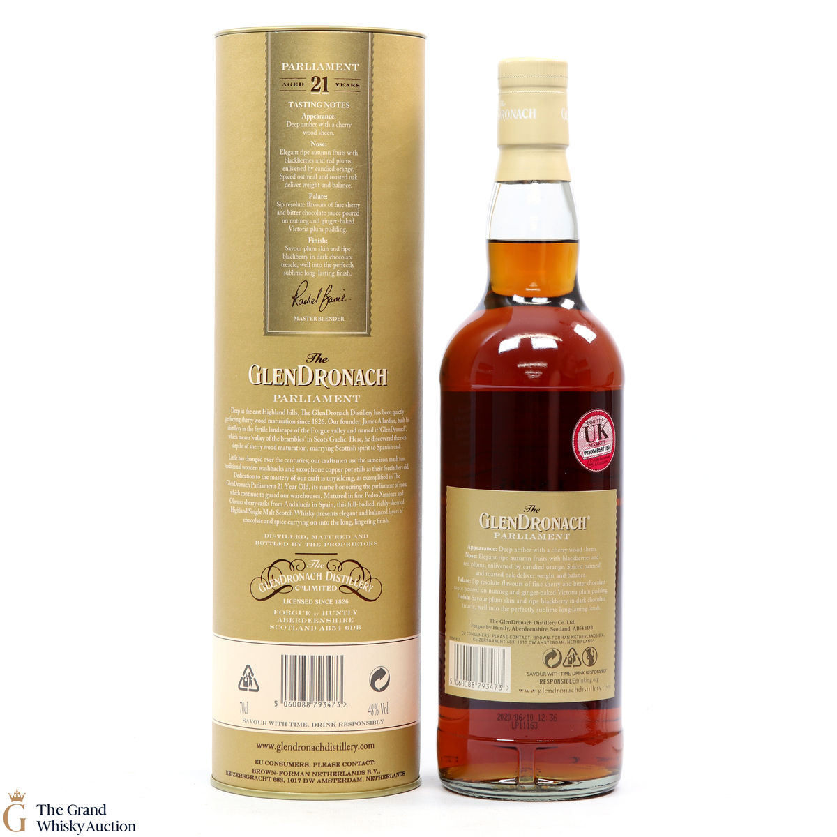 Due to the various ages of bottles and their seals, the condition of liquid is at the buyer's discretion and no claim can be lodged against failure/leakage in transit. Loss and breakage cover is available at 3% of the hammer price as standard. If the lot is not insured, no claim can be lodged against the courier or The Grand Whisky Auction for breakage or loss in transit.