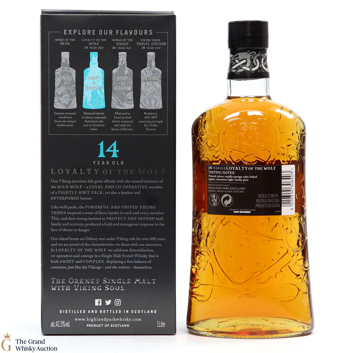 The 'Loyalty of the Wolf' by Highland Park is a 14-year-old single malt. This is a 1L bottling.