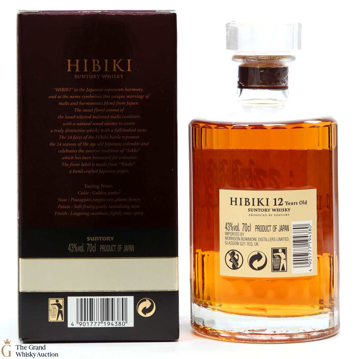 This now-discontinued Hibiki 12 year old is a superb blended Japanese whisky meaning it has become a very popular, rare and collectable bottling. Hibiki includes malt whisky from Yamazaki and Hakushu, as well as grain whisky from Chita. The whisky is partly matured in plum liqueur barrels. Unfortunately, Hibiki 12 was discontinued by Suntory in 2015.