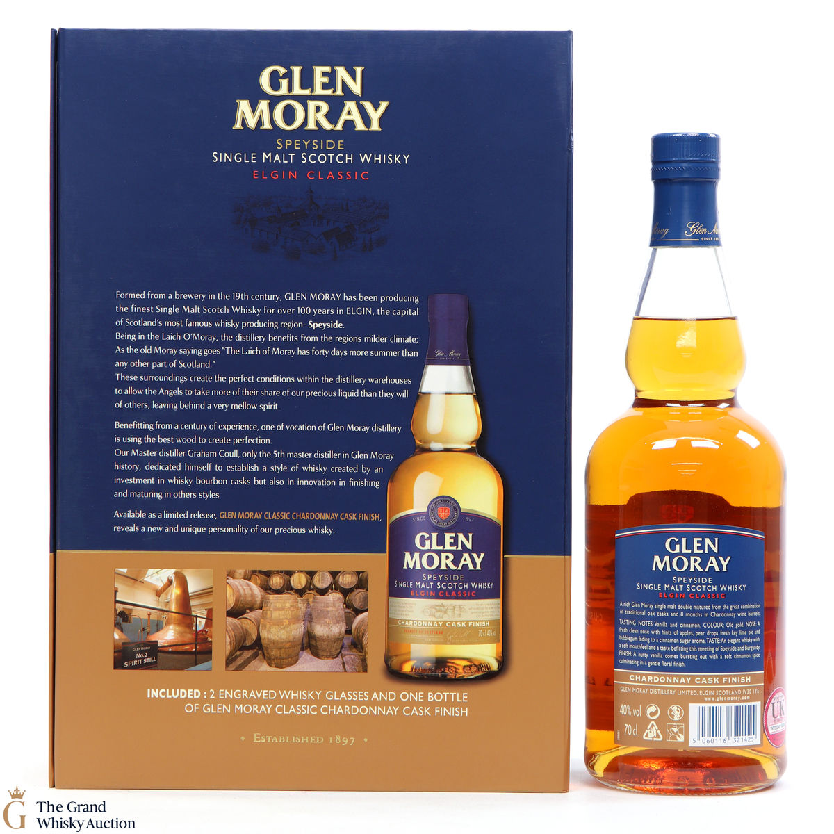 This gift set includes the 70cl Glen Moray and 2 x whisky tumblers.