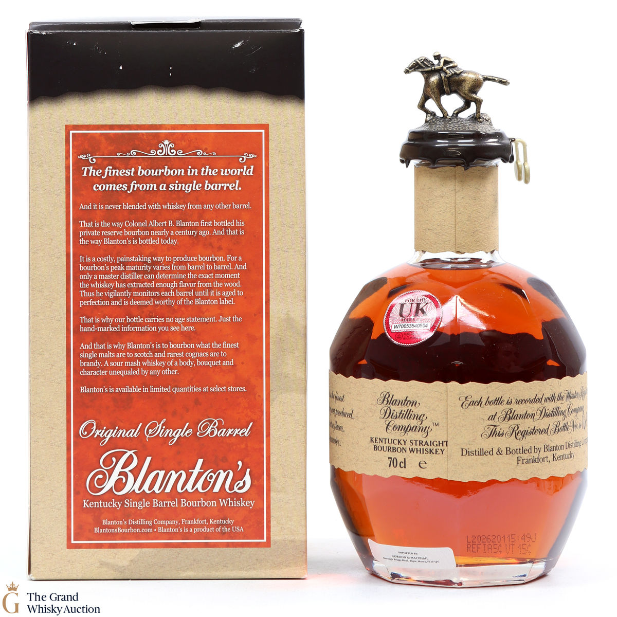 Blanton's Single Bourbon is normally 6 to 8-year-old bourbon, aged in Warehouse H at Buffalo Trace in the metal-clad warehouse at the distillery. The metal, transfers heat quicker than brick warehouses, allowing for faster ageing.