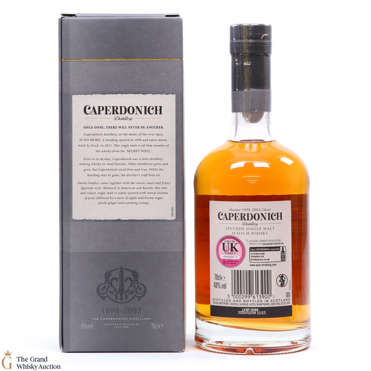 Due to the various ages of bottles and their seals, the condition of liquid is at the buyer's discretion and no claim can be lodged against failure/leakage in transit. Loss and breakage cover is available at 3% of the hammer price as standard. If the lot is not insured, no claim can be lodged against the courier or The Grand Whisky Auction for breakage or loss in transit.