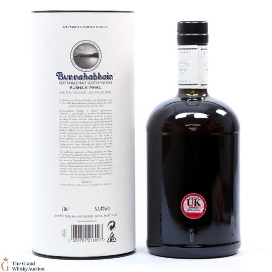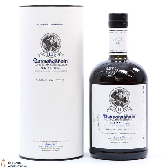 Bunnahabhain Rubha A’ Mhail is a 11-year old Bunnahabhain which was bottled for the 2015 Fèis Ìle. Aged in two Spanish Manzanilla sherry butts (#550 & #554) this is a limited edition of 1,200 individually numbered bottles.
