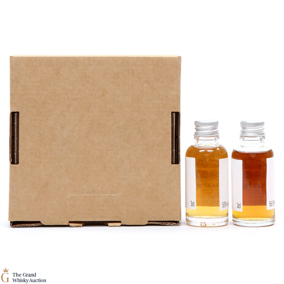 A wee dram pack containing the Bunnahabhain Fèis Ìle 2020 releases – the 2010 Mòine Amontillado Finish (3cl, 56.9%) and the 2002 Madeira Cask Finish (3cl, 53%).