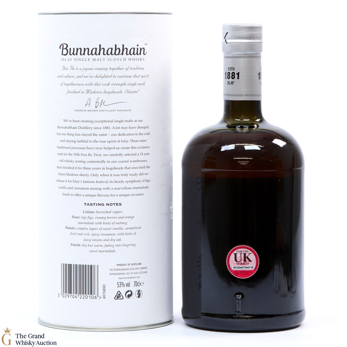 This limited edition single malt from Bunnahabhain Distillery was matured for 14 years in classic bourbon barrels, then finished in Madeira casks for another three years. Bottled at 53%, and released by Bunnahabhain for the 25th anniversary of Fèis Ìle - Fèis Ìle 2020. This is one of only 1164 bottles produced.