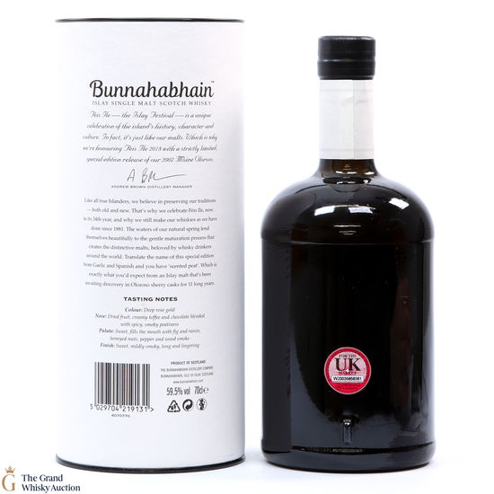This was a limited release of just 1881 bottles. This was one of two bottlings from Bunnahabhain released in celebration of Fèis Ìle 2018.
