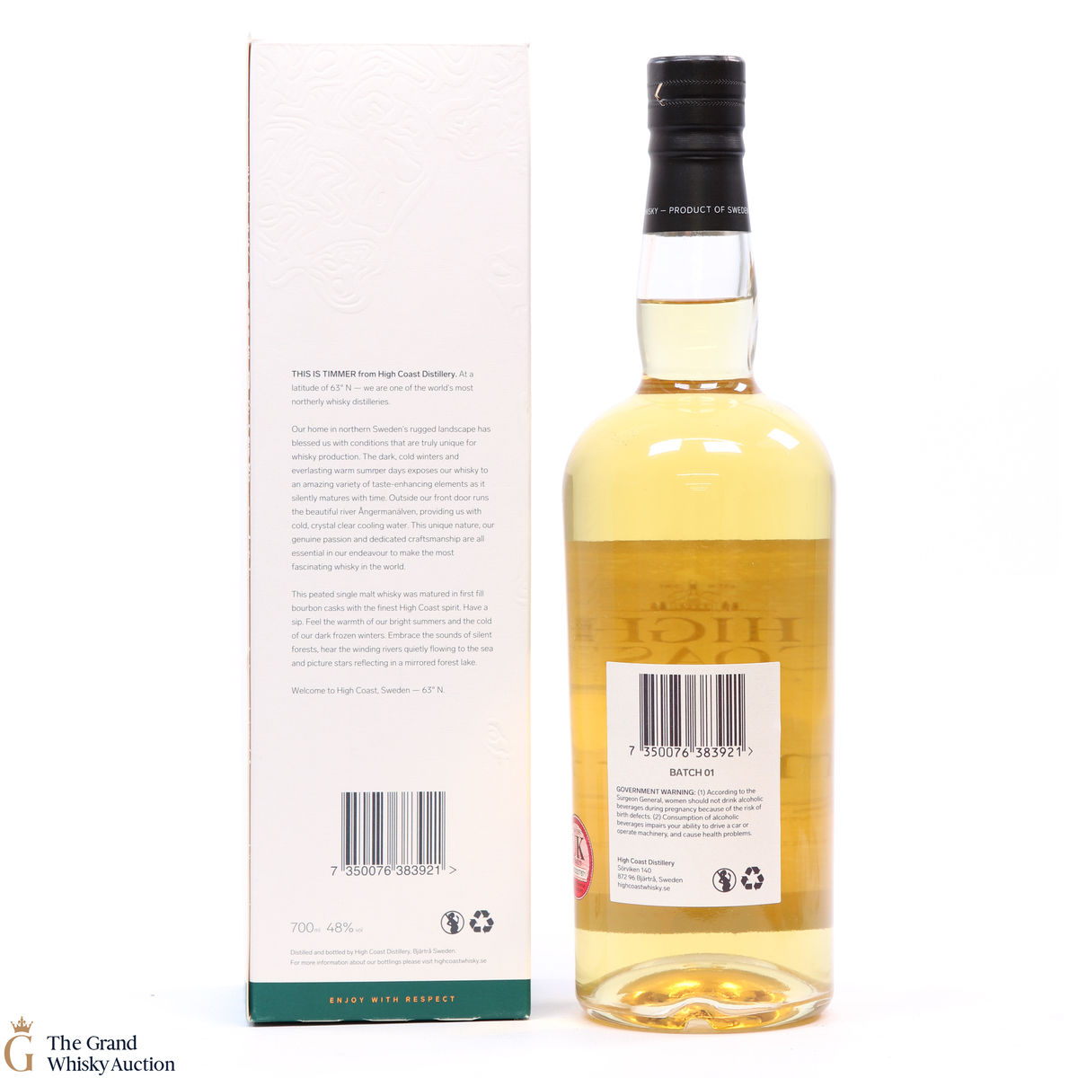 High Coast is a Swedish single malt whisky from High Coast Distillery in Bjartra Sweden. Timmer - Peat Smoke was released as part of the Origins Series. Timmer translates to 'Timber' in Swedish. This whisky is made up of 100% peated malt. Matured in first-fill bourbon barrels for around six years. Bottle at 48% ABV in 2019. This is one of 12,764 bottles.