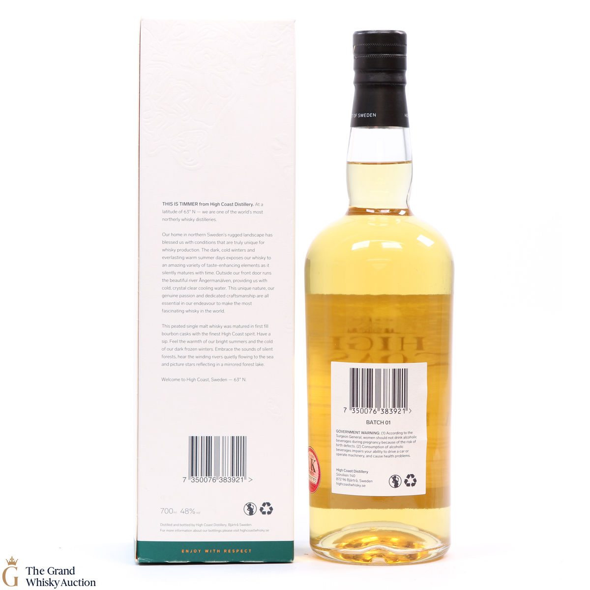 High Coast is a Swedish single malt whisky from High Coast Distillery in Bjartra Sweden. Timmer - Peat Smoke was released as part of the Origins Series. Timmer translates to 'Timber' in Swedish. This whisky is made up of 100% peated malt. Matured in first-fill bourbon barrels for around six years. Bottle at 48% ABV in 2019. This is one of 12,764 bottles.