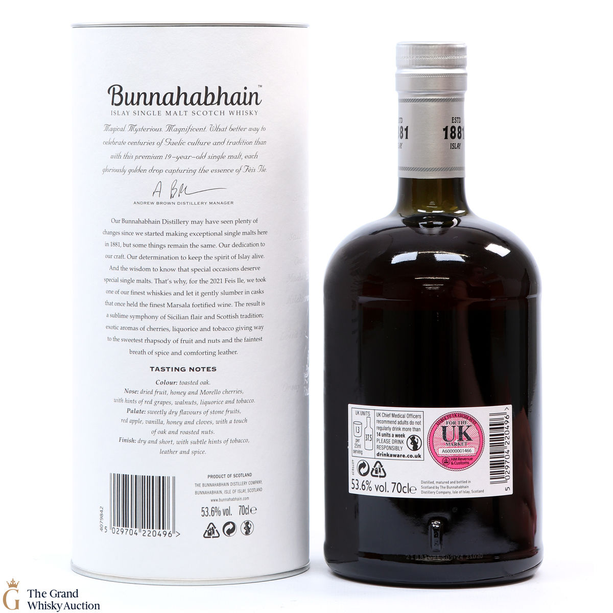 For Feis Ile 2021, Bunnahabhain Distillery released this unique bottling. Distilled back on the 8th of October 2001, this single malt was finished in a cask that once held Marsala fortified wine resulting in a combination of Sicilian flair and Scottish tradition. Bottled on the 19th of January 2021, this is one of only 1333 bottles produced.