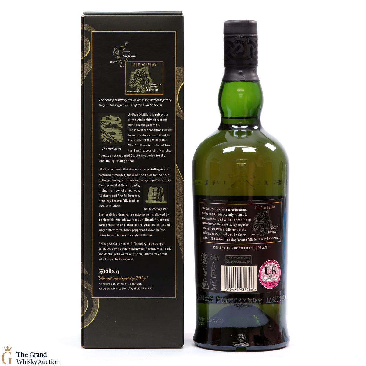 'An Oa' was the first addition to Ardbeg's core range for a decade when introduced in 2017. It is made up from a combination of spirit aged in Pedro-Ximenez sherry casks and bourbon barrels. Married in a French-oak marrying vat, this is rounded and smoky with notes of toffee, aniseed, date and banana.
