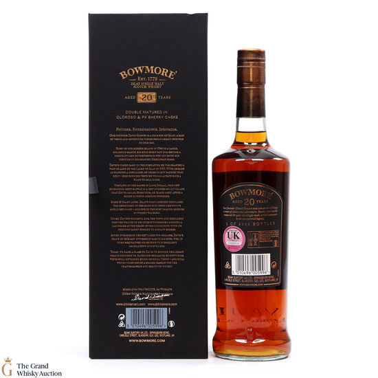 This 20-year-old celebrates and is a testament to the founder of Bowmore. This dram has gone through a double maturation period of 15 years in Oloroso Sherry Butts followed by 5 years in a first fill PX Butts. One of only 6000 bottles.