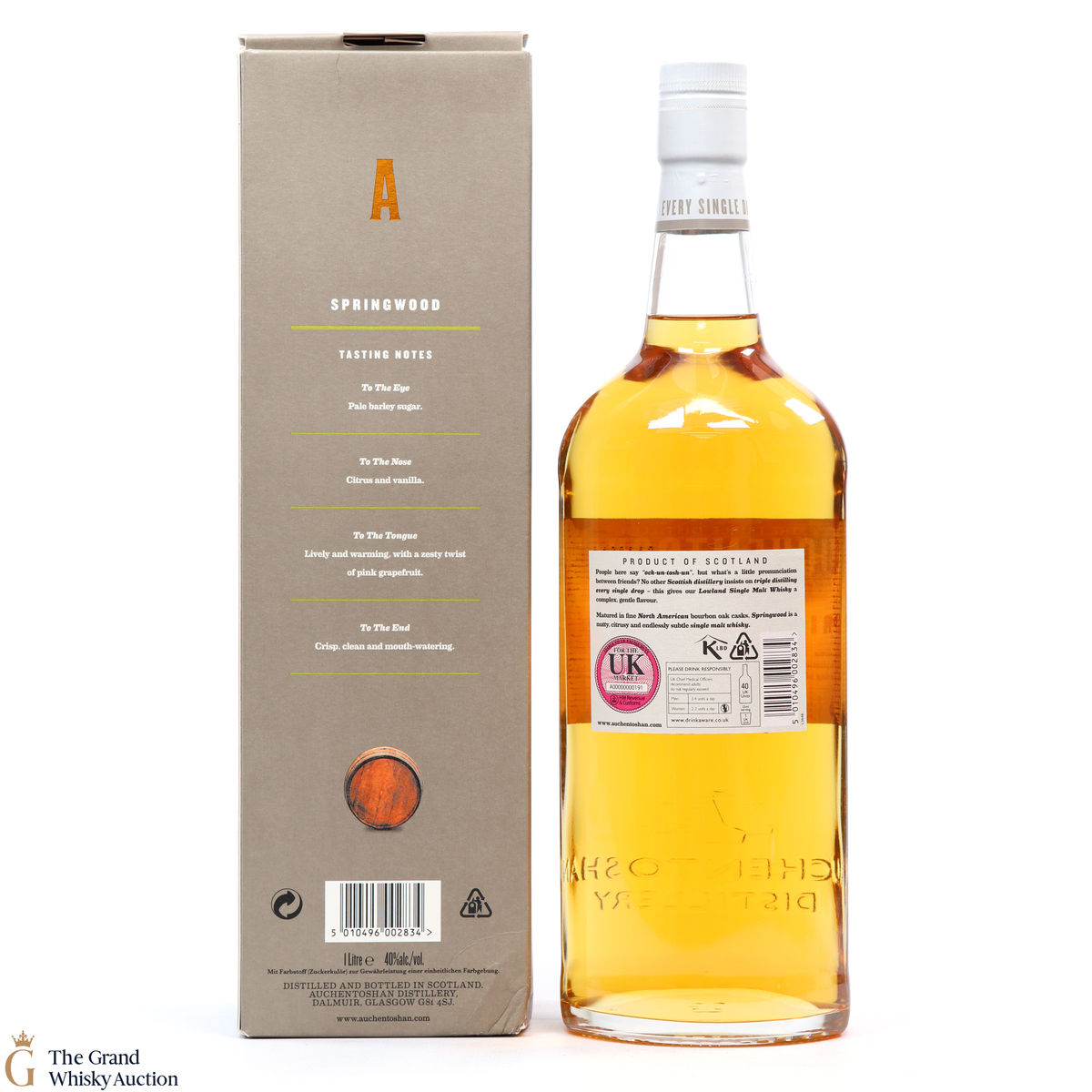 Auchentoshan's Springwood expression, aged entirely in American bourbon casks, released for travel retail. This is a 1-litre bottling.