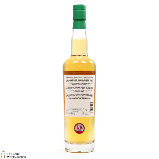 When not distilling Francis Cuthbert looks after the estate, growing and malting the barley. The barley variety is called Optic and was grown in the south fields.