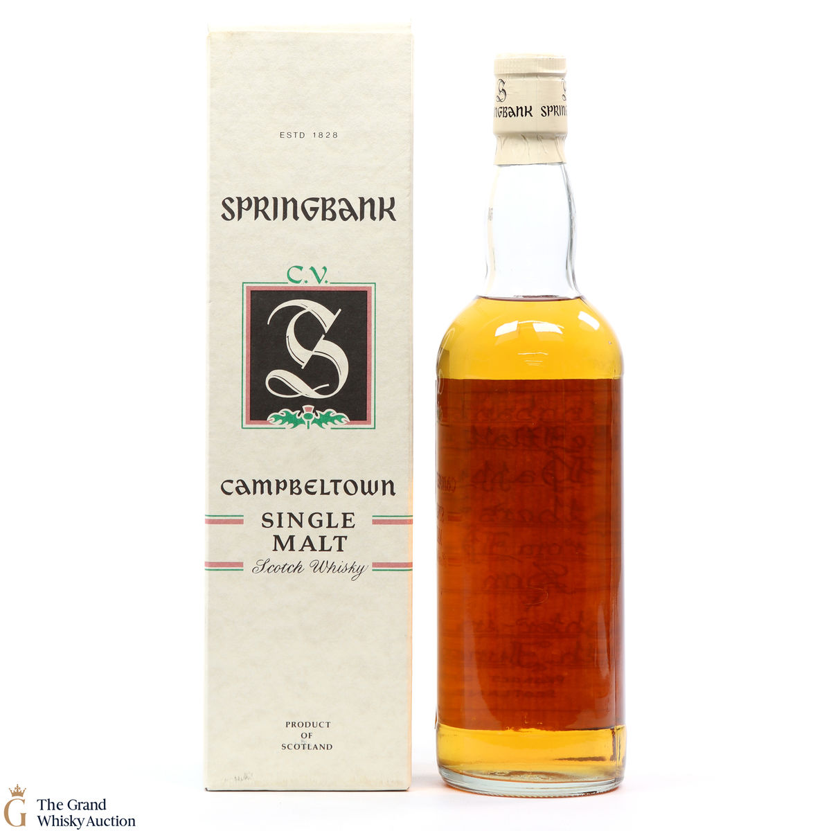 A collectable bottling of Springbank C.V. single malt. The C.V was a distillery exclusive at Springbank which has since been discontinued. This bottle has a personalised Father's Day label dated 15th of June 1997.
