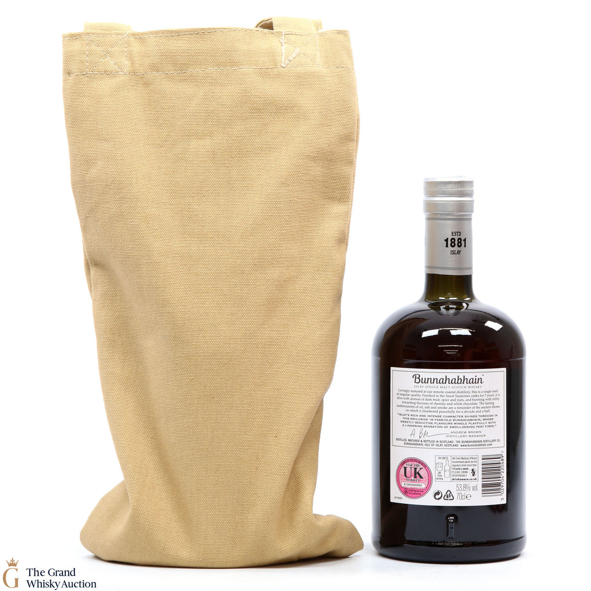 ([%% bidValueExVat|multi_currency %%] ex. VAT)Buyers delivering this bottle to a UK address will pay [%% bidValueAndCommissionWithVat | multi_currency %%] (Hammer price + 12.5% buyer commission + 20% VAT on the hammer price & buyer commission).