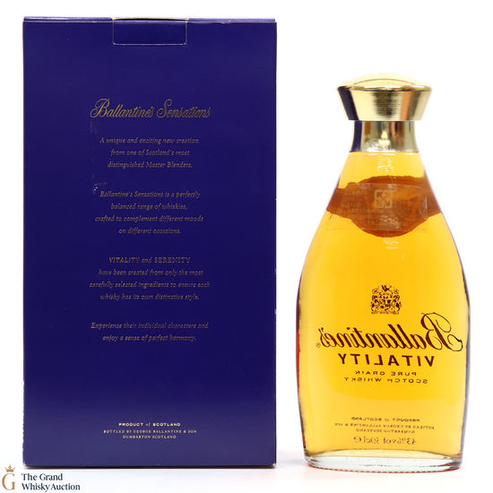 Ballantine's Vitality, a plentiful, pure grain scotch whisky featuring a revitalising taste and distinctive aroma. The Ballantine Vitality Pure Grain bottle was released as part of the Ballantine's Sensation whiskies, as was the Ballantine Serenity.