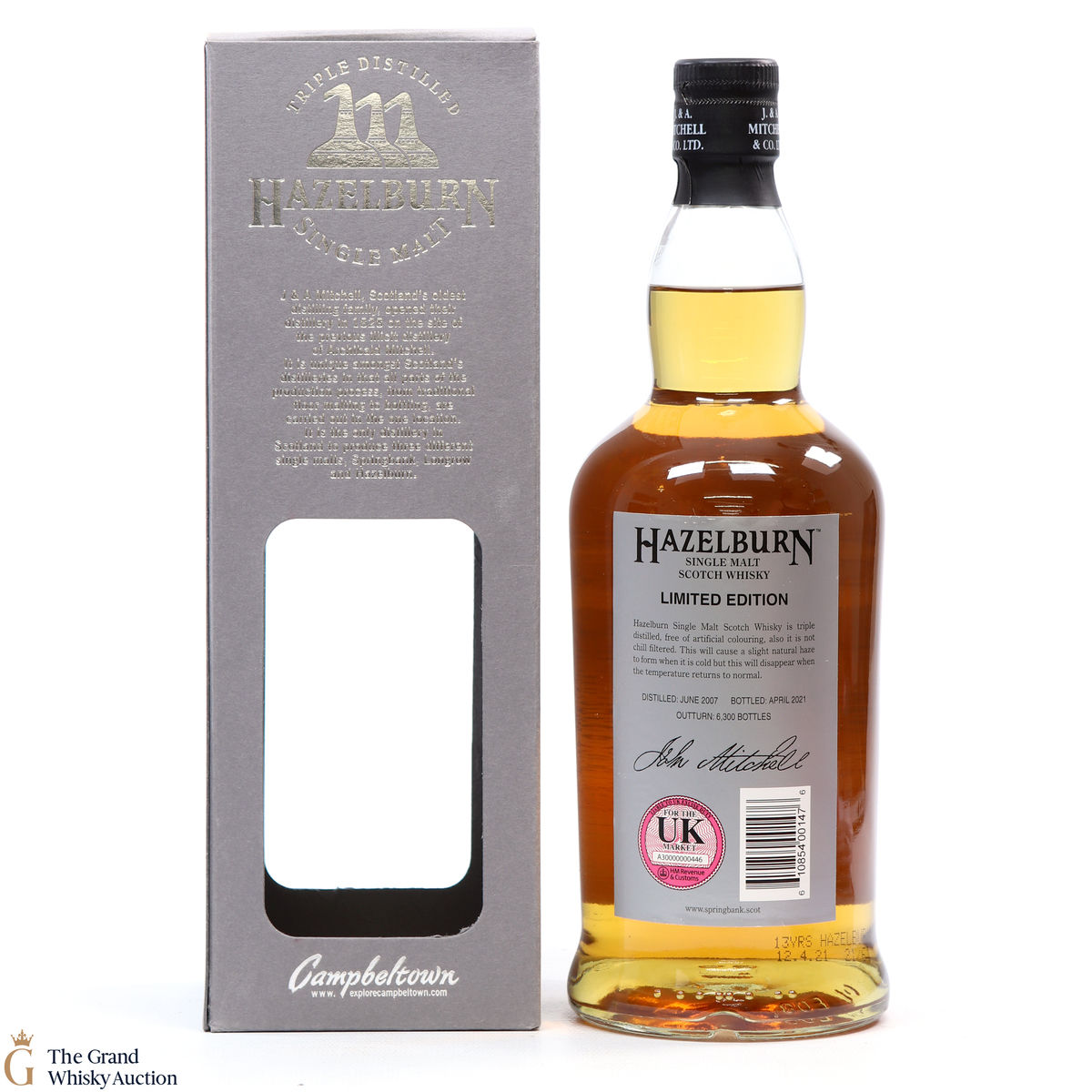 Distilled in June 2007 at Hazelburn Distillery in Campbeltown, this single malt underwent maturation for 13 years before being bottled in April 2021. This rare bottling is one of only 6300 produced.