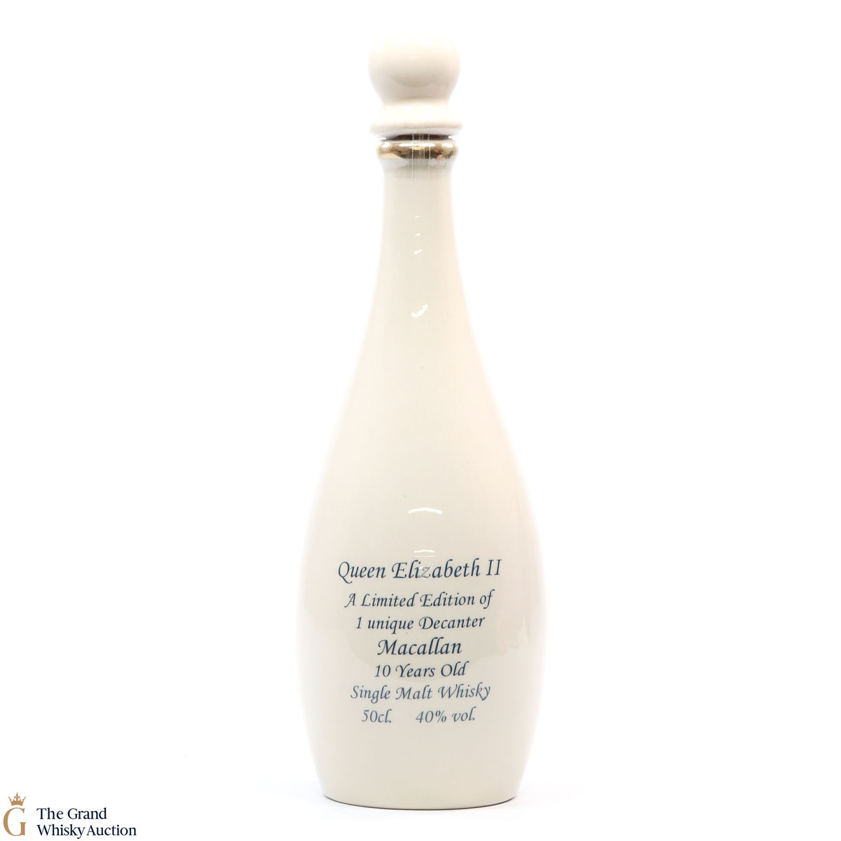 A limited-edition of 1, unique Queen Elizabeth decanter containing 10 Year Old Macallan.