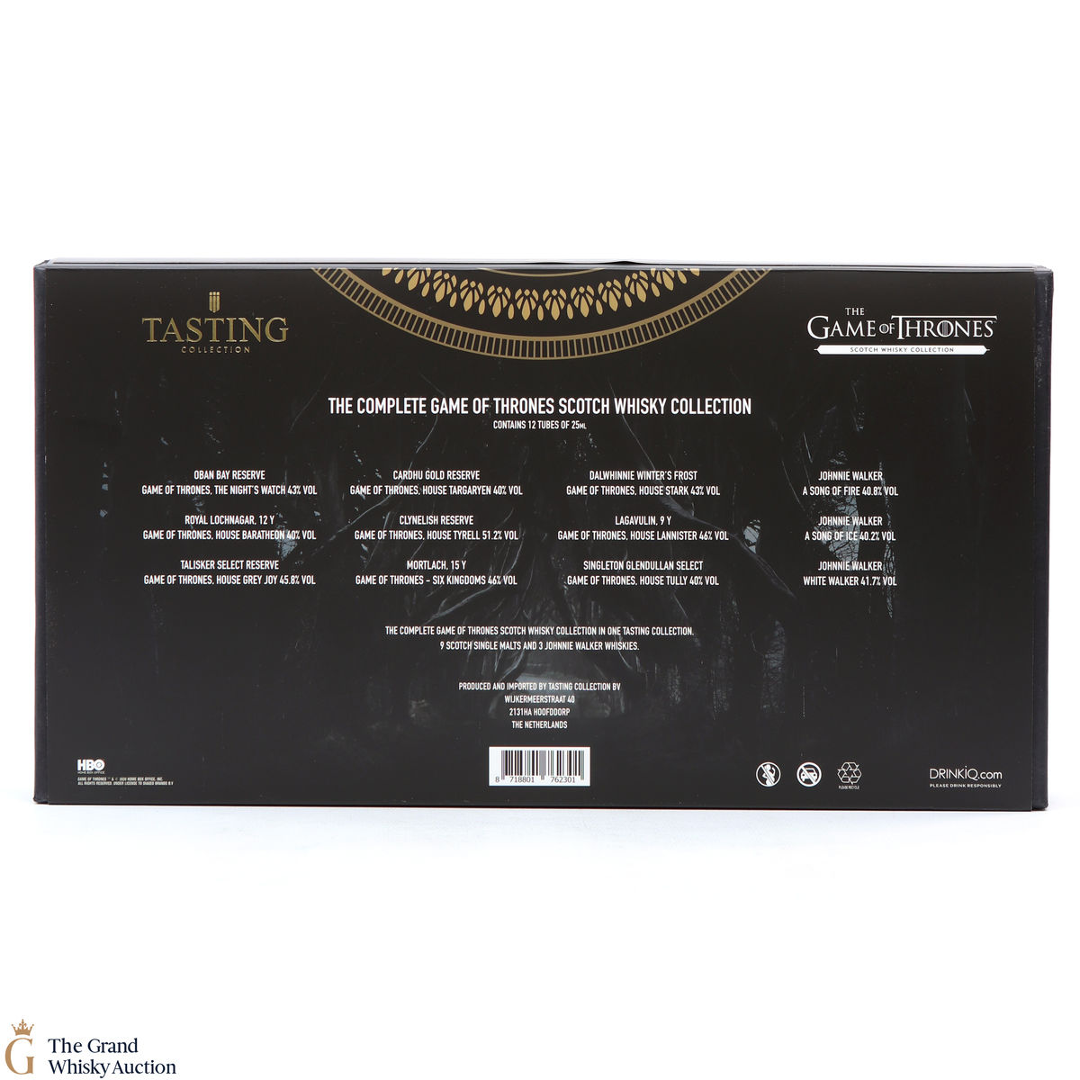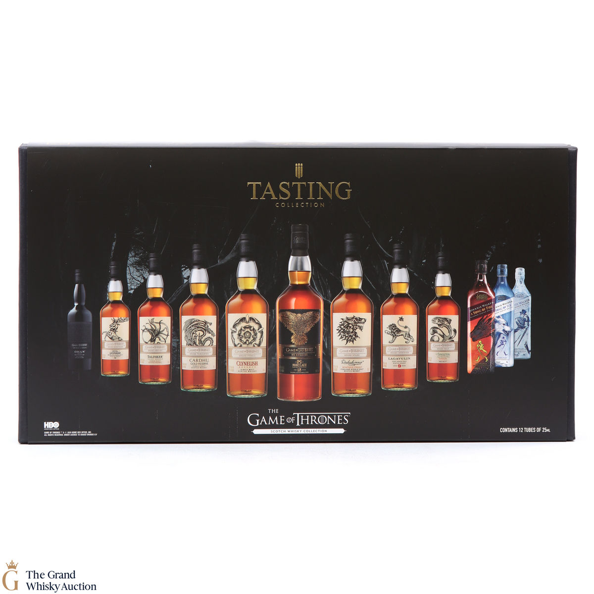 This unique tasting collection includes the entire Game of Thrones Whisky set in 2.5cl test tubes: