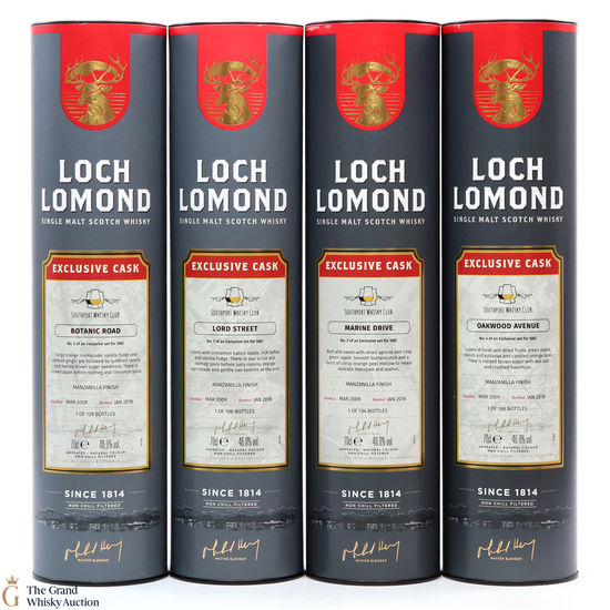 This lot includes Loch Lomond - Southport Whisky Club Exclusives (4 x 70cl).